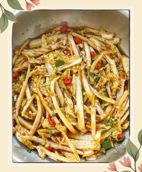 2. **戴一次性手套抓拌30秒**,让每根菜丝都裹上酱汁。